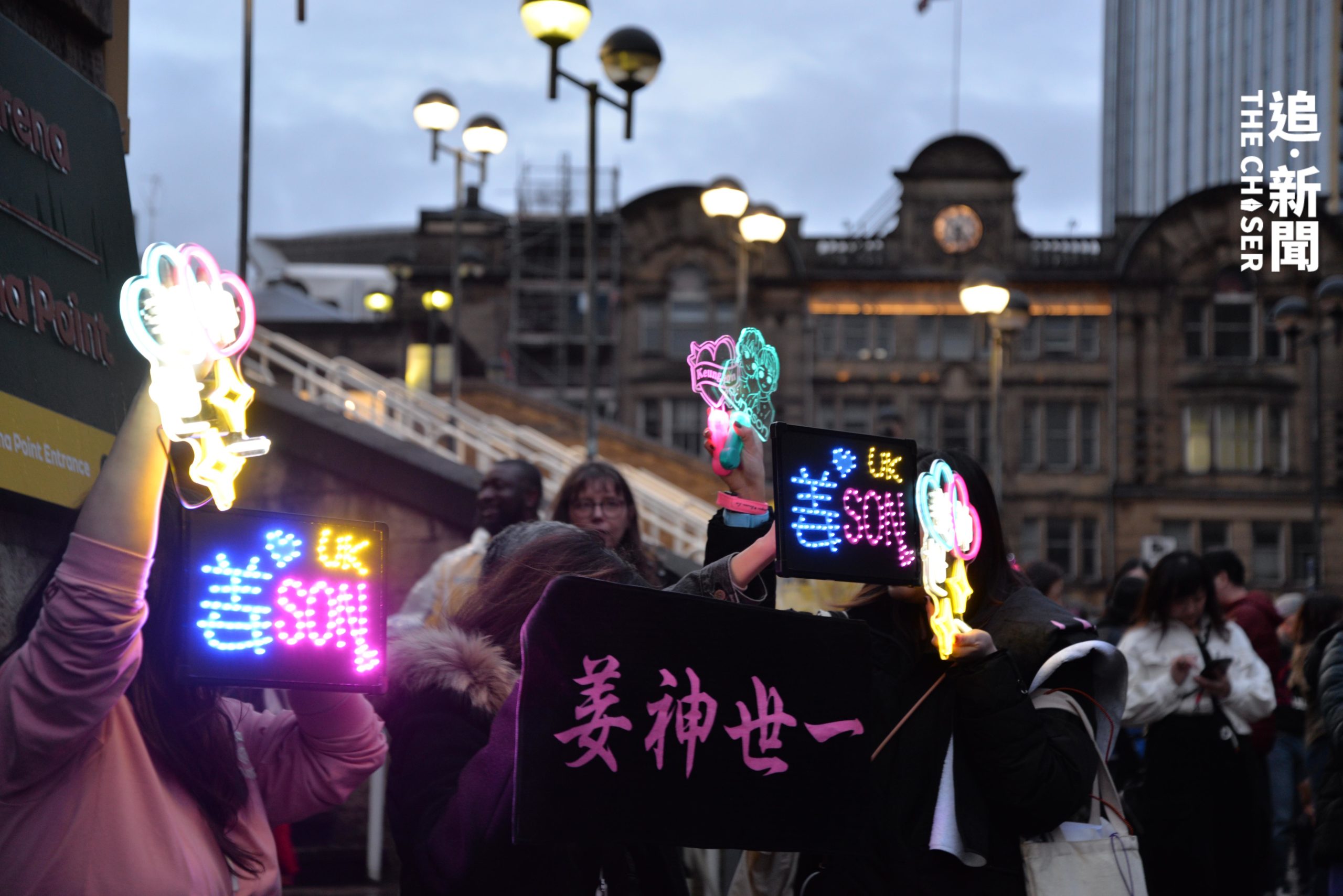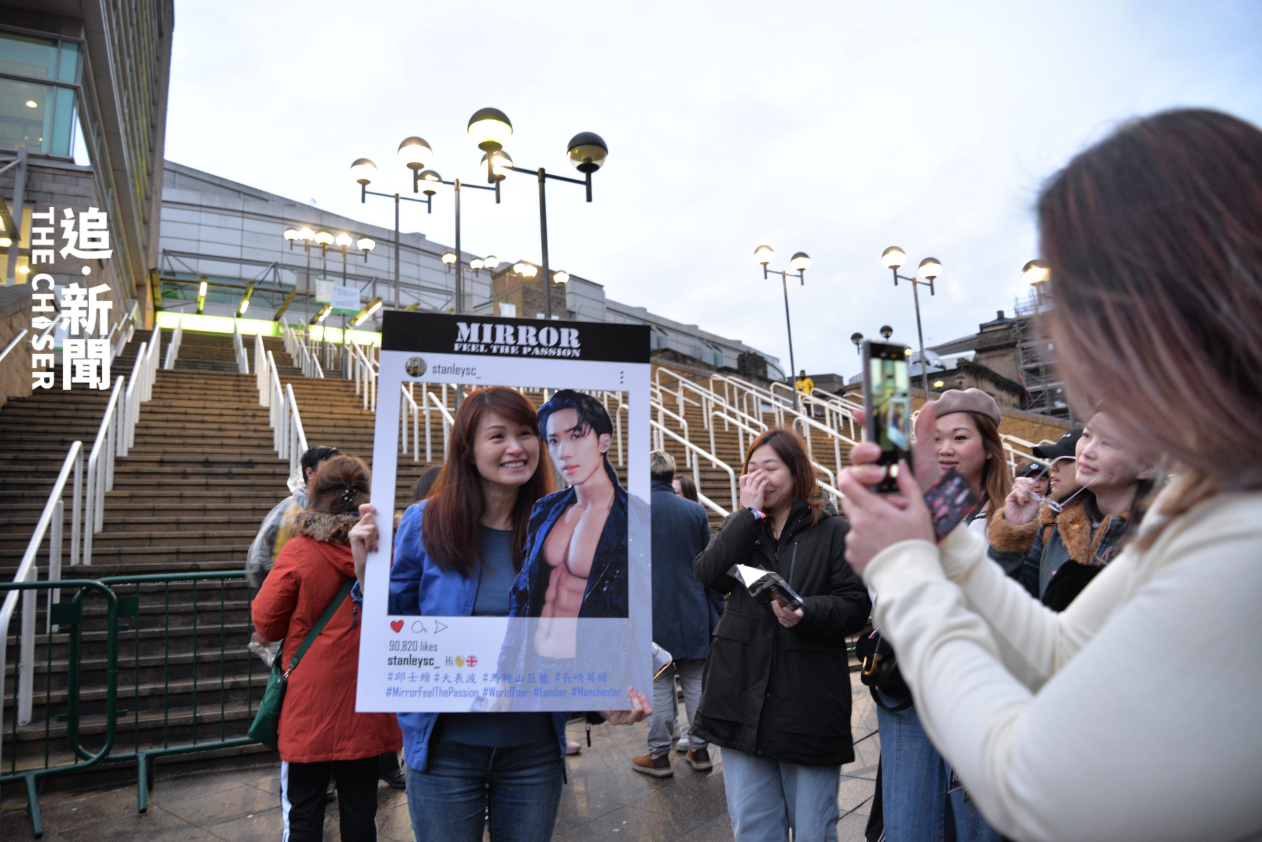香港人氣男團MIRROR首次世界巡迴演唱,英國站第二場在曼城AO Arena舉行的演唱會周四(14日)圓滿結束。約萬名鏡粉在英國親睹偶像風采,未開騷先興奮,雖然這天曼城全日下着綿綿細雨,但無法淋熄一眾鏡粉的熱情,12子的粉絲團在開騷前各自舉行不同應援活動,派發充滿心思的精美應援物品,開騷前3小時陸續在場館附近聚集打卡。