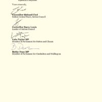 繼中西區前議員吳兆康所屬地方議會Wokingham周二(4月29日)正式致信負責中國超級大使館最終審批的副首相韋雅蘭(Angela Rayner)後,同樣由自民黨控制的Sutton市議會周五(2日)發反對信件,並表明支持5月3日於前皇家鑄幣廠對外發起的抗議活動。有份聯署的新晉市議員蔡嘉源(Richard Choi)接受《追新聞》訪問時表示,有逾4,000港人選擇在Sutton重建家園,Sutton市議會領袖Barry Lewis、自民黨國會議員Luke Taylor與Bobby Dean均有份聯署,希望能就皇家鑄幣廠舊址興建中國超級大使館表達憂慮,以及共同譴責港府拒絕自民黨國會議員Wera Hobhouse入境一事,批評「是對民主原則以及開放對話與交流根基的直接挑戰」。