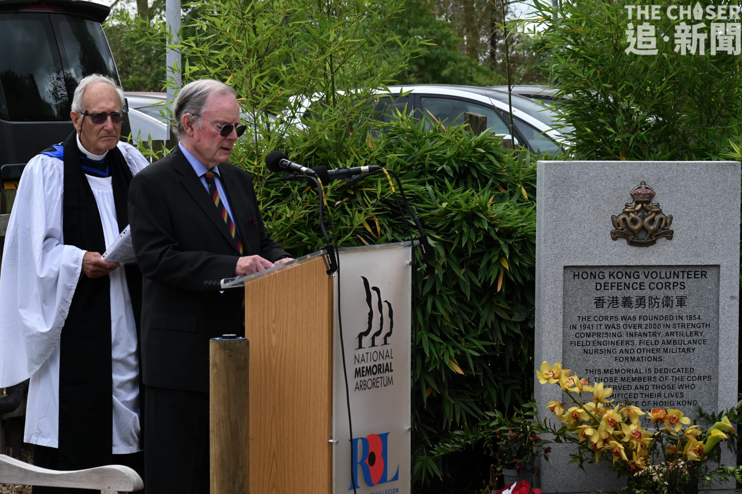 皇家香港軍團前指揮官、退役中校 Jeremy Hutchins 在開場白中,讀出末代港督兼香港義勇軍最後一任總司令彭定康勳爵(Lord Patten)的「留言」,指對未能親身參與儀式感到遺憾,對部隊的貢獻與犧牲感到自豪,並對協會致以誠摯祝福及祝願儀式順利舉行。